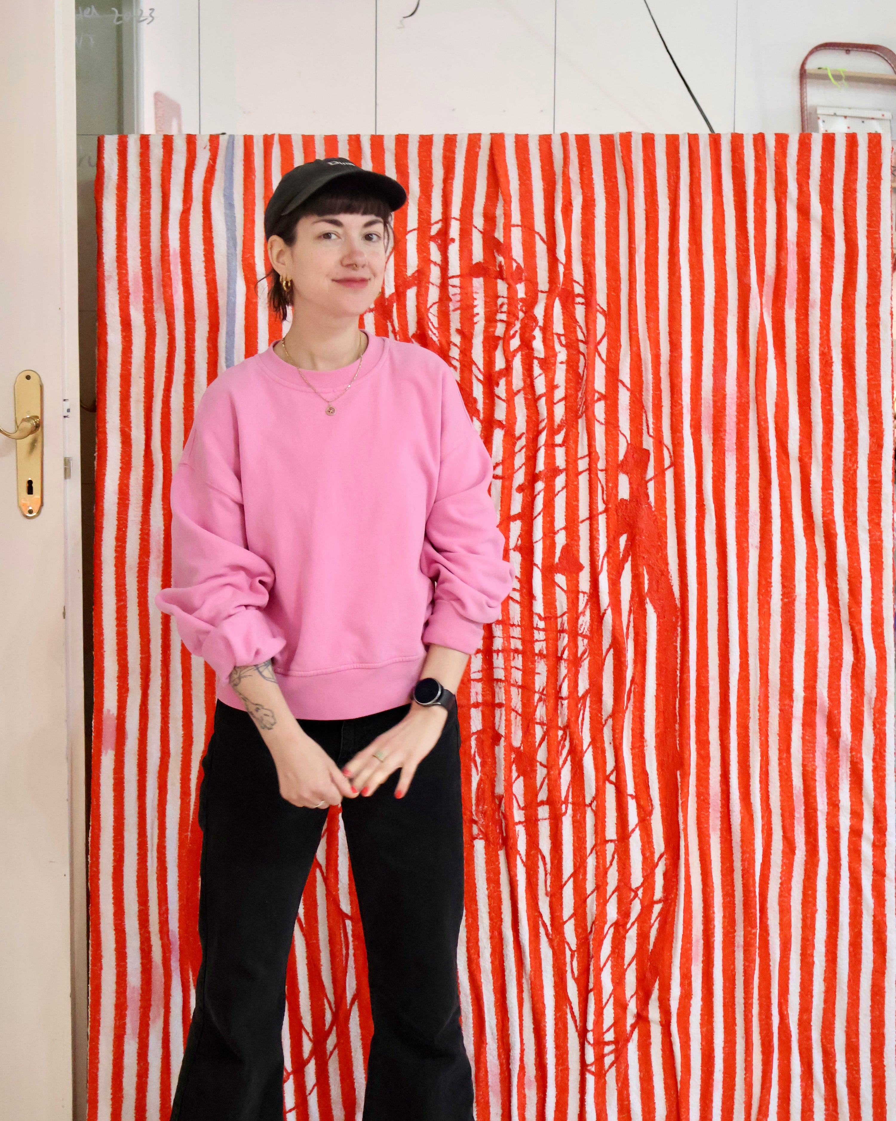 The works of Vienna-based artist Kater D. emerge from a constantly growing archive of sketches, photographs, and materials, and combine memories, textiles, and prints into conceptual series of works using changing techniques such as painting, drawing, and tufting.